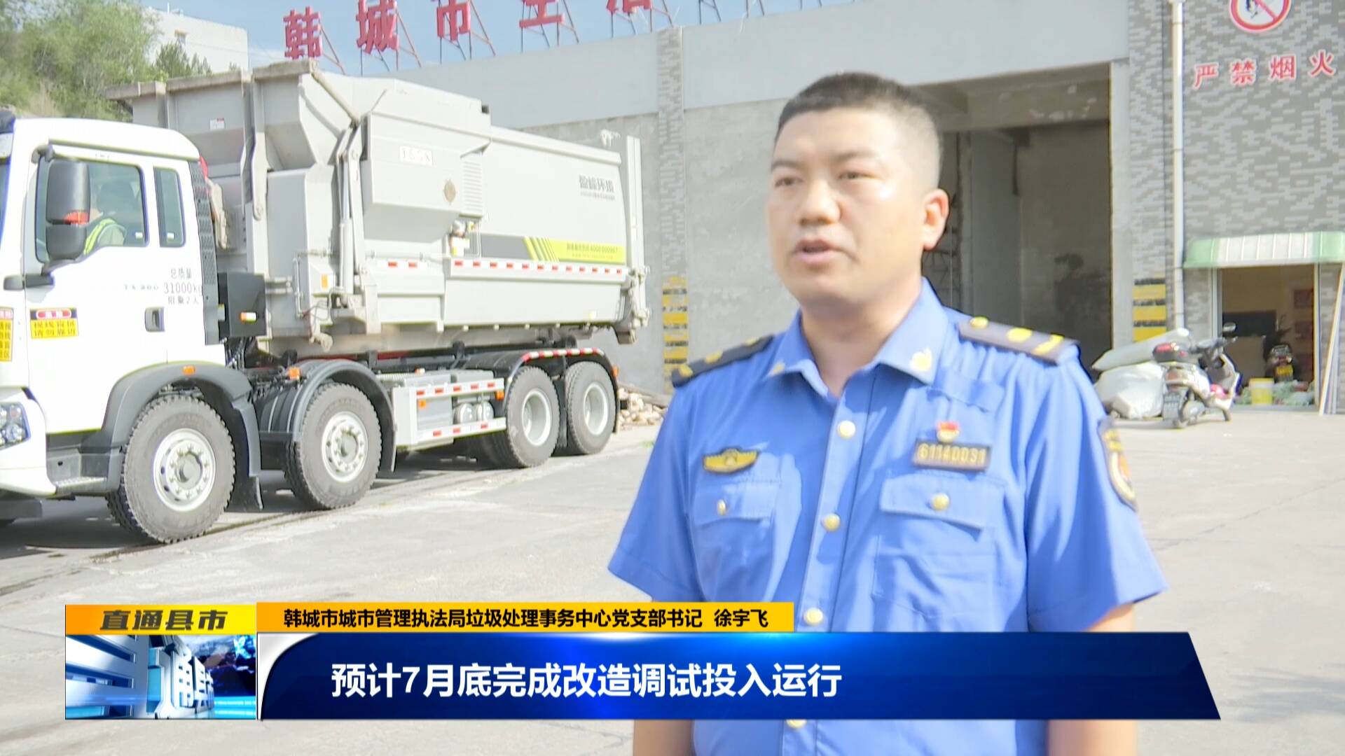 韓城市城市管理執(zhí)法局垃圾處理事務(wù)中心黨支部書記 徐宇飛:“預(yù)計7月底完成改造調(diào)試投入運行,后續(xù)將同步推進城區(qū)其它轉(zhuǎn)運站改造,全部改造完成后我市城區(qū)生活垃圾日處理能力將達到350噸以上。”