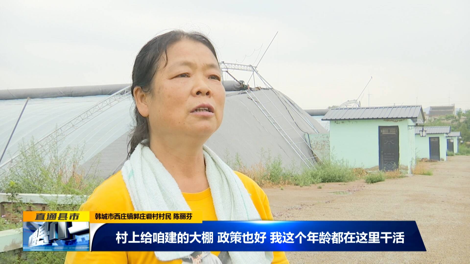韓城市西莊鎮(zhèn)郭莊砦村村民 陳麗芬:“村上給咱建的大棚,政策也好。我這個年齡都在這里干活,家庭也有收入了,還能照顧老人,還能管孫子,這是一舉兩得的事,收入也很高,工資都按月結(jié)算,不拖欠。”