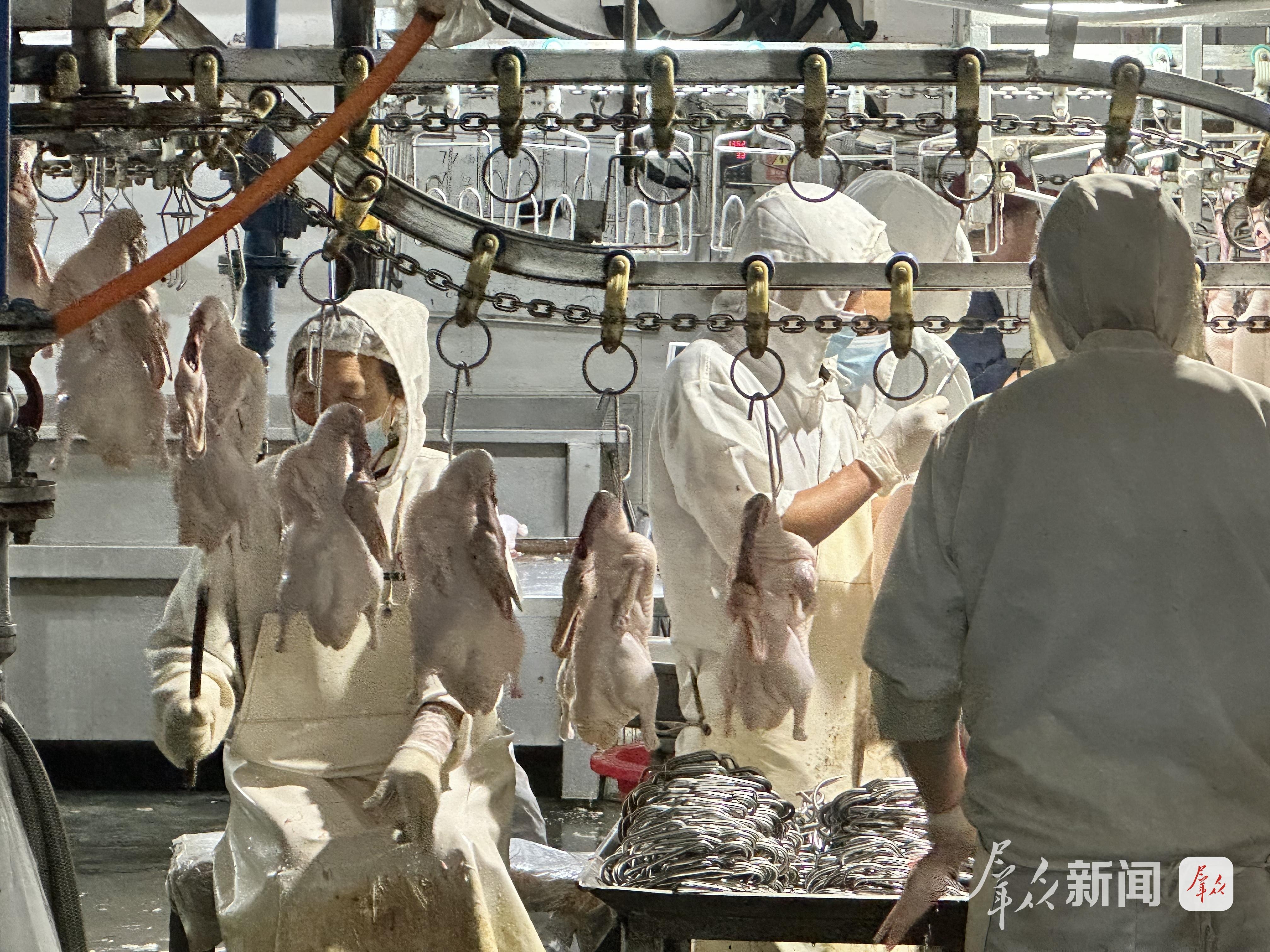 步入明亮、整潔的屠宰加工車間參觀區(qū),透過玻璃望去,一條自動化程度極高的生產(chǎn)線正高速運轉(zhuǎn)。秦子介紹道:“這就是我們核心產(chǎn)能的體現(xiàn),年加工能力超600萬只。從宰殺、脫毛、凈膛到預(yù)冷、分割、速凍,整個流程實現(xiàn)了高度自動化、標(biāo)準(zhǔn)化。”記者看到,身著統(tǒng)一工裝的工人們在各自工位上有條不紊地操作,現(xiàn)代化的設(shè)備精準(zhǔn)地完成每一道工序。低溫環(huán)境確保了產(chǎn)品的新鮮與安全,而嚴(yán)格的品控環(huán)節(jié)貫穿始終。秦子表示:“每一只從這里出去的鴨子,都代表著我們‘高品質(zhì)烤鴨胚’的承諾,尤其是為滿足高端市場需求而精心加工的烤鴨產(chǎn)品。”
