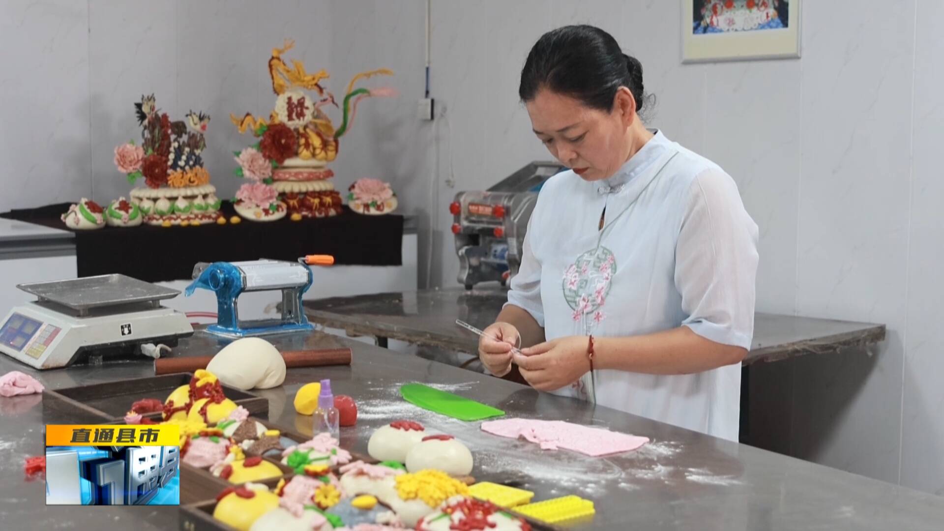這幾天在韓城古城,花饃制作技藝非遺傳承人呂曉艷為了迎接即將到來的中秋佳節,正在專注地做著自己手里的月餅糖饃。一朵朵精致小巧的可愛小花在她的指尖快速生出,點綴在先前做好的饃盤上,一個花朵栩栩如生、造型精妙的月餅糖饃就完成了。