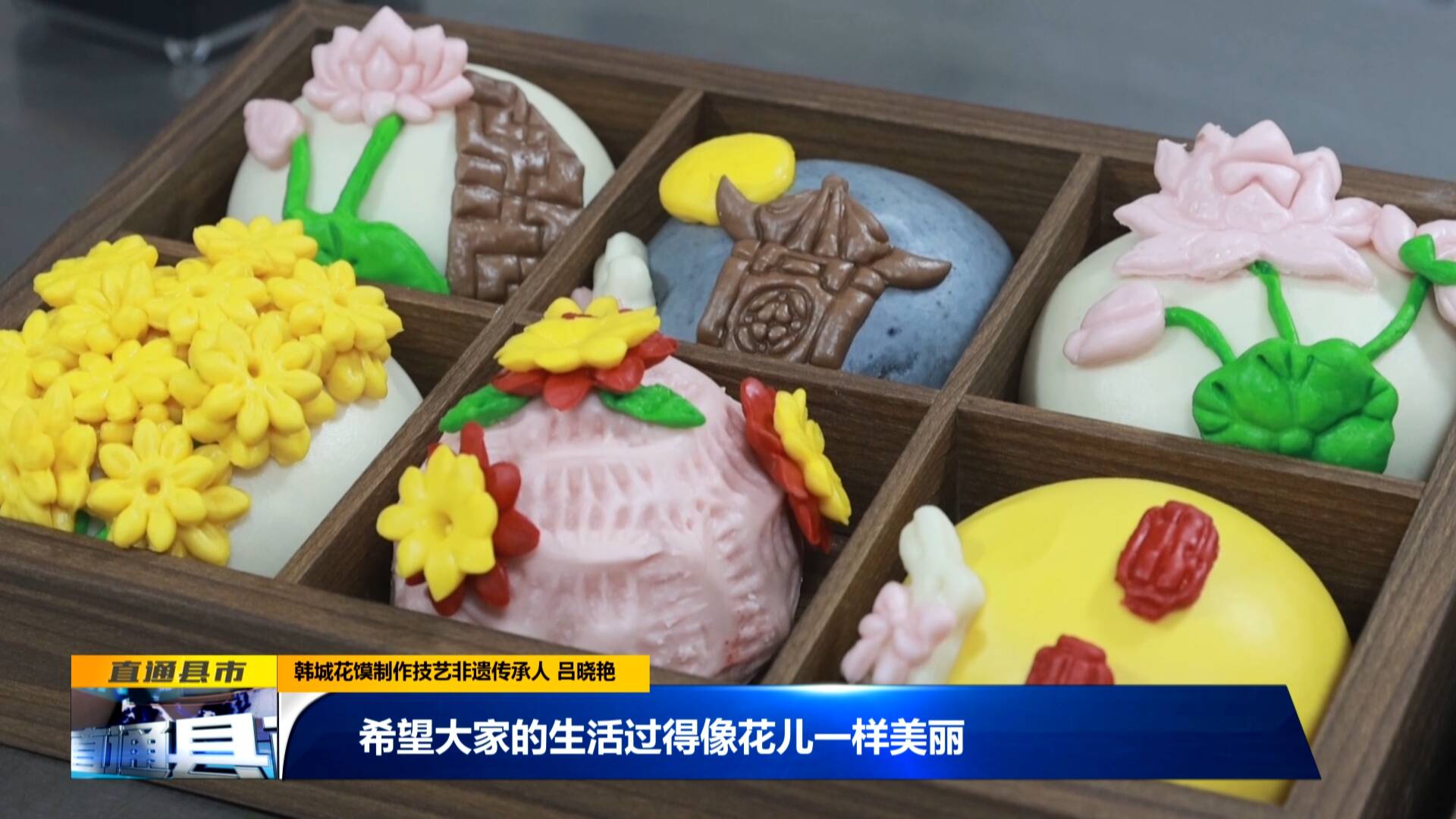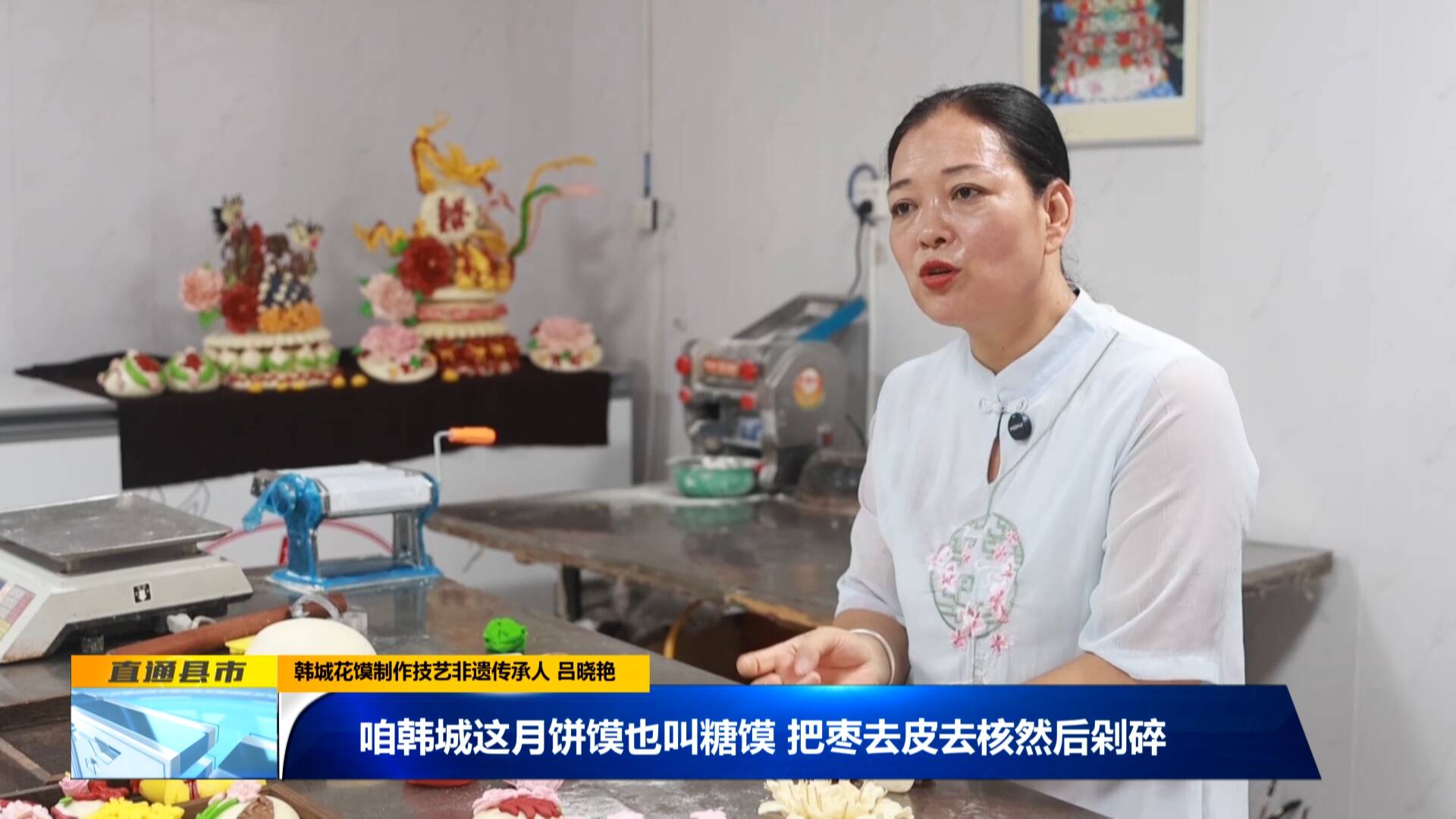 韓城花饃制作技藝非遺傳承人 呂曉艷:“你看這月餅花饃上的花就是象征著花好月圓,希望大家的生活過得像花兒一樣美麗。再就是在這上面有韓城的古建筑,希望在外的游子能吃到家鄉的味道,把咱韓城花饃帶出韓城,宣傳韓城文化旅游。”