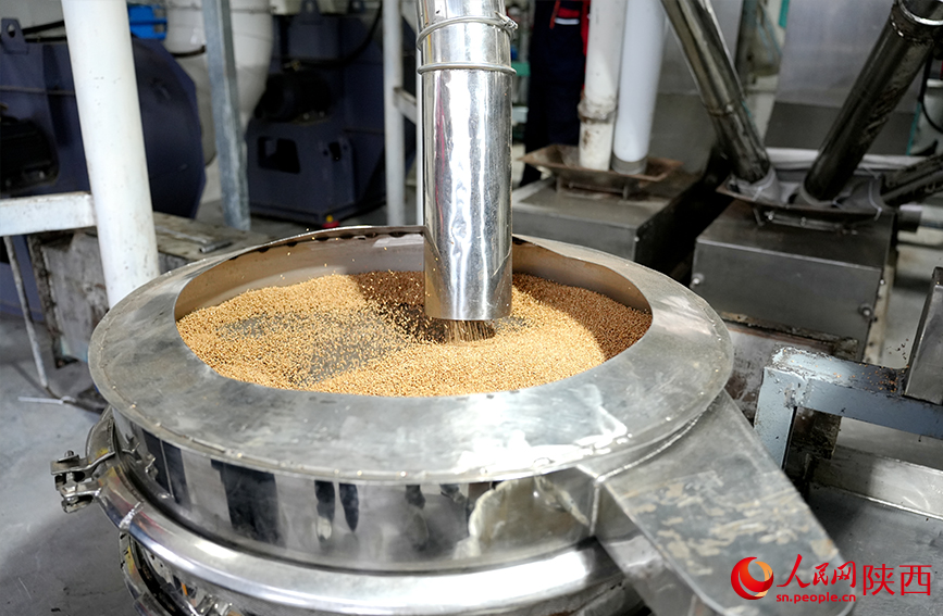 陜西為康生物科技股份有限公司的生產線上,花椒籽正在進行殼仁分離。人民網記者 孫挺攝