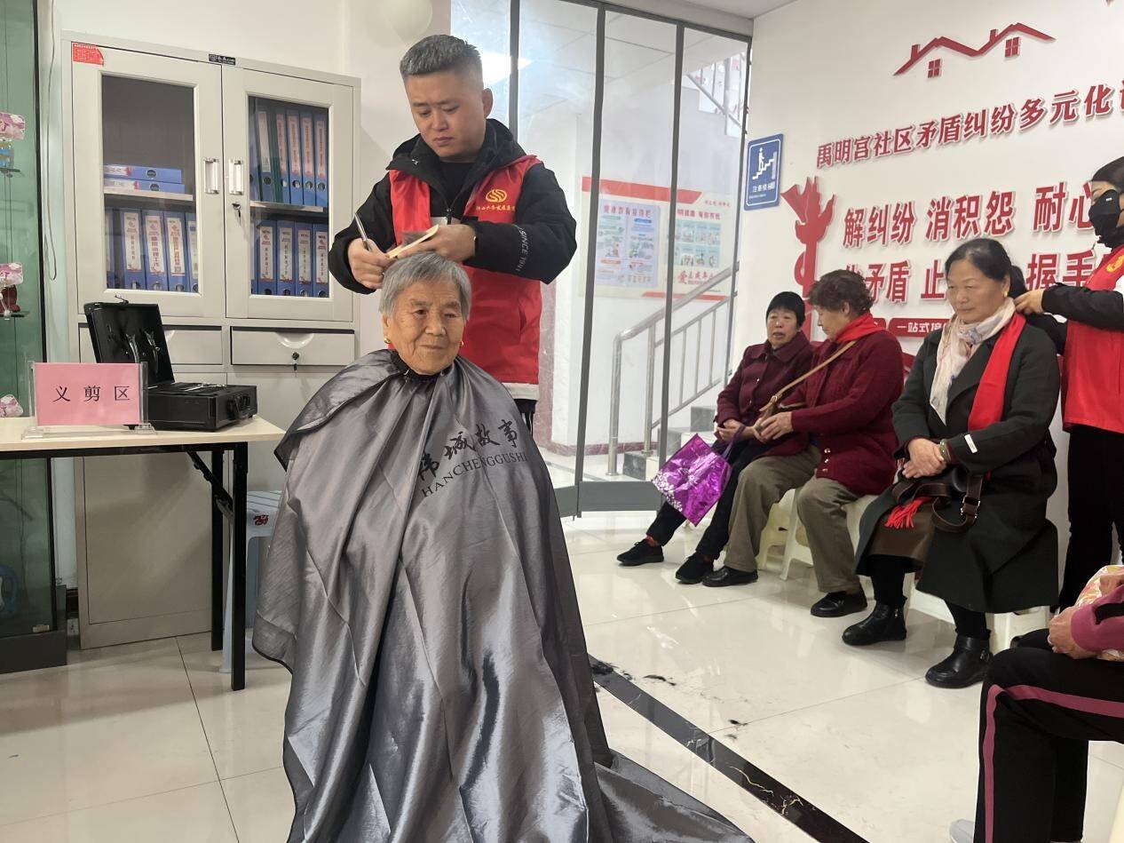 活動現場專設便民服務區,聚焦老人實際需求提供多元服務。韓城心安醫院醫護人員開展義診與健康咨詢,為老人測血壓、解疑慮;興宏信家政志愿者提供肩頸按摩服務,幫助長者舒緩疲勞;韓城故事理發工作室理發師細致修剪發型,貼心滿足老人喜好。精準對接需求的便民服務,讓關懷直抵人心,贏得長者一致稱贊。