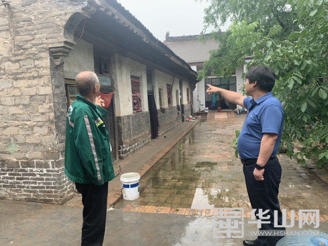 張王濤(右一)雨天到馬新智家查看住房安全情況
