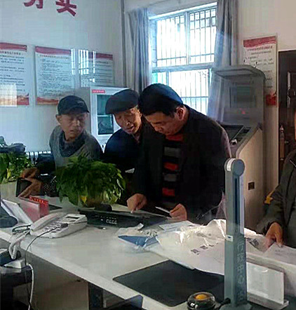 合陽(yáng)縣王村鎮(zhèn)坊社社區(qū)黨支部書(shū)記(右一)用信合自助端繳費(fèi)機(jī)為群眾繳費(fèi)