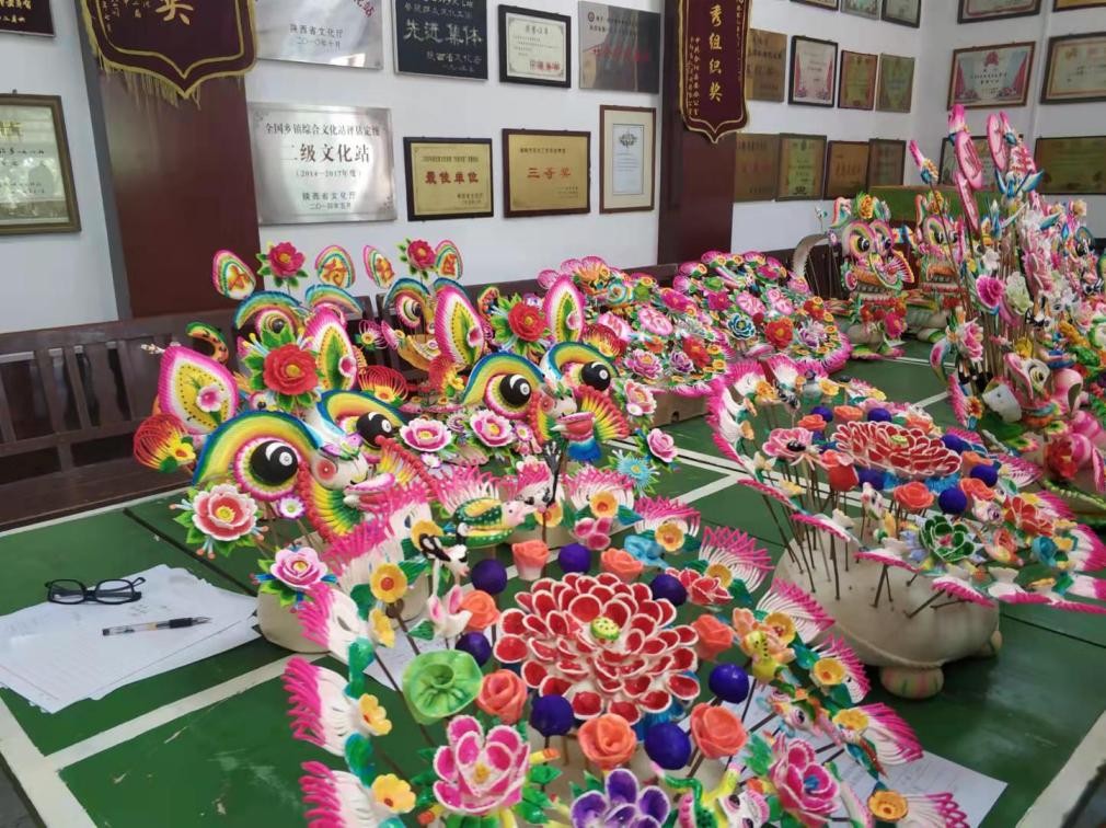 活動(dòng)中,最引人注目的無(wú)疑是各村(社區(qū))的面花制作比賽,合陽(yáng)面花,絢麗多姿的面花藝術(shù)把鄉(xiāng)間村野的民俗內(nèi)涵物化、形象化、藝術(shù)化,美輪美奐的面花造型生動(dòng)夸張、色彩鮮艷奪目、民俗氣息濃郁、制作精巧細(xì)膩,引得現(xiàn)場(chǎng)群眾駐足而觀、嘖嘖稱奇。