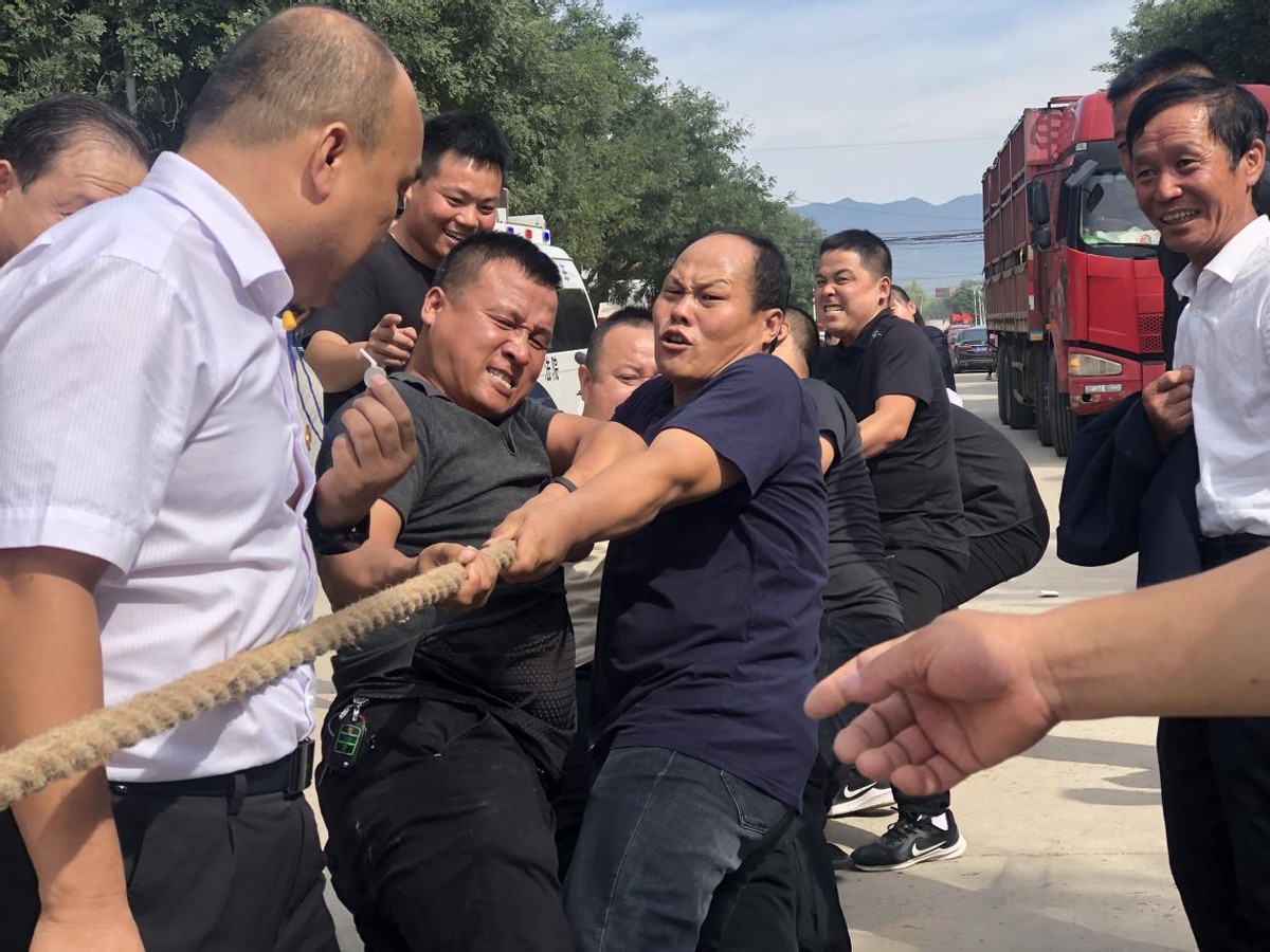 中午10時(shí),拔河比賽首先火熱開(kāi)賽,通過(guò)抽簽,初賽分為八組,每組采取三局兩勝制,決出復(fù)賽隊(duì)伍爭(zhēng)奪冠軍。經(jīng)過(guò)六場(chǎng)激烈的比賽角逐,產(chǎn)生了鎮(zhèn)機(jī)關(guān)、小村社區(qū)兩支勢(shì)均力敵的隊(duì)伍,只見(jiàn)決賽雙方扎穩(wěn)馬步、擺好陣勢(shì),隨著一聲哨響,雙方立刻展開(kāi)“廝殺”。比賽現(xiàn)場(chǎng),參賽隊(duì)員齊心協(xié)力,抓緊繩子,用力拼搏。場(chǎng)外的拉拉隊(duì)員在搖旗助威、加油吶喊,激情四射。最終小村社區(qū)勇奪冠軍,歡呼聲響徹整個(gè)賽場(chǎng)。此次拔河比賽充分調(diào)動(dòng)了干部職工參與體育鍛煉的積極性,不僅加深了甘井鎮(zhèn)各駐鎮(zhèn)單位、村(社區(qū))之間的情誼,還進(jìn)一步激發(fā)了大家的集體榮譽(yù)感和團(tuán)隊(duì)精神,增強(qiáng)了全體干部的凝聚力和戰(zhàn)斗力。隨后,籃球比賽、廣場(chǎng)舞大賽等一個(gè)個(gè)精彩節(jié)目的演出齊頭并進(jìn),更是將現(xiàn)場(chǎng)喜悅、祥和的氣氛推向了高潮,精彩的表演贏得現(xiàn)場(chǎng)觀眾的陣陣歡呼聲和掌聲。