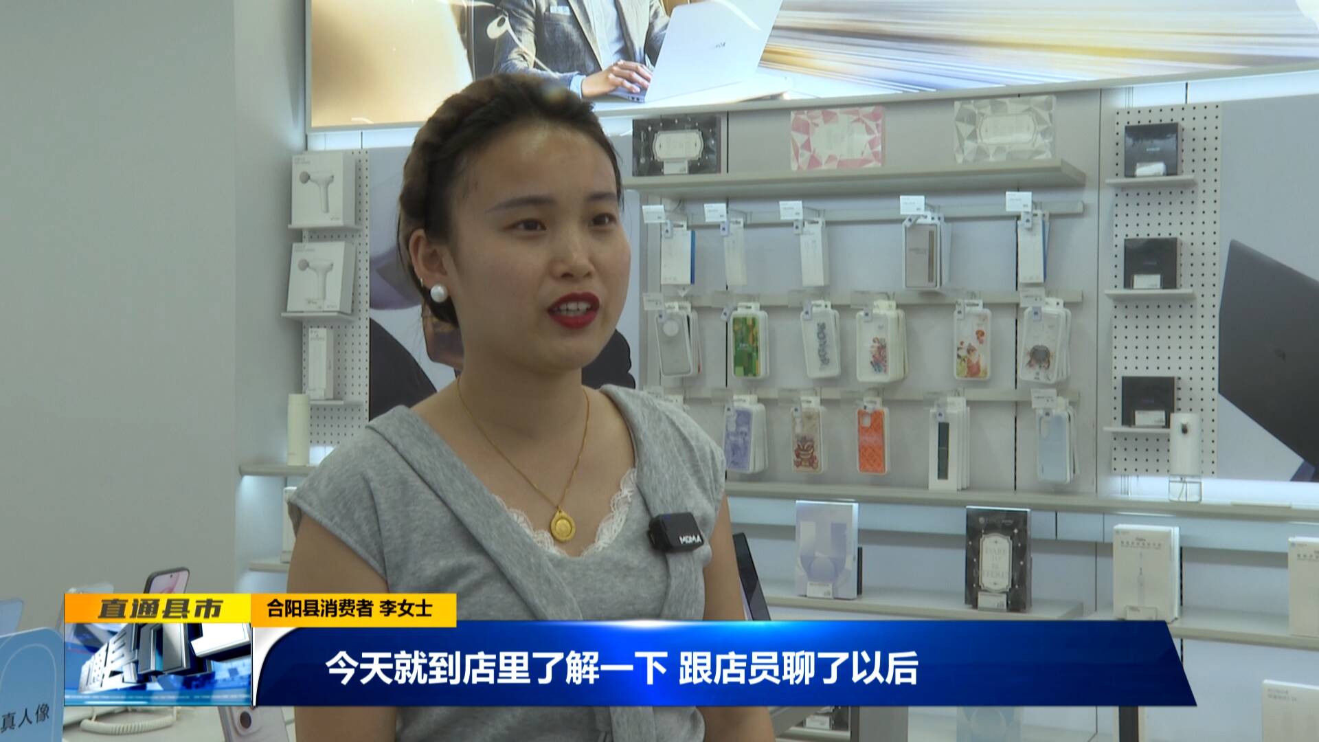 在縣城南大街的一家手機(jī)專(zhuān)賣(mài)店,店員正向李女士介紹一款熱銷(xiāo)機(jī)型,并詳細(xì)講解目前手機(jī)可以享受的國(guó)補(bǔ)政策。