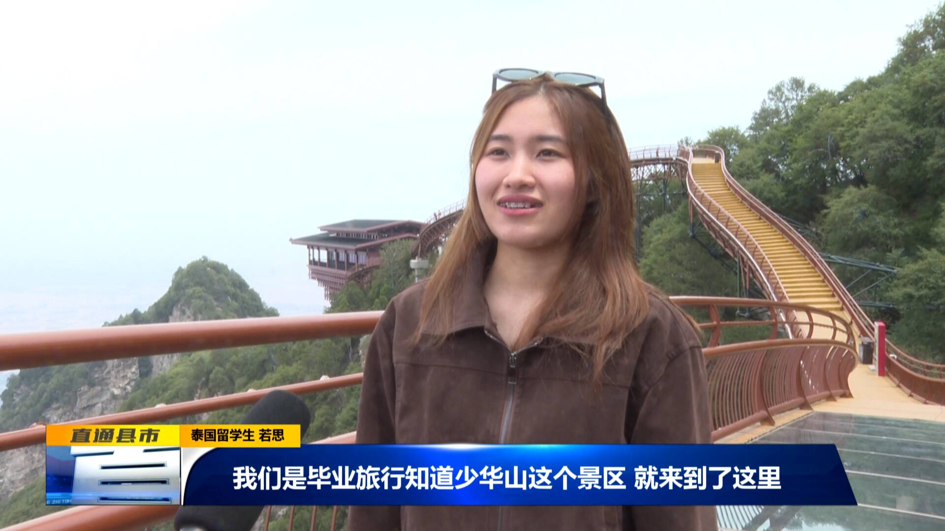 泰國留學生 若思:“我們是畢業旅行知道少華山這個景區,就來到了這里,這里的風光不錯,我們挺喜歡這里。”
