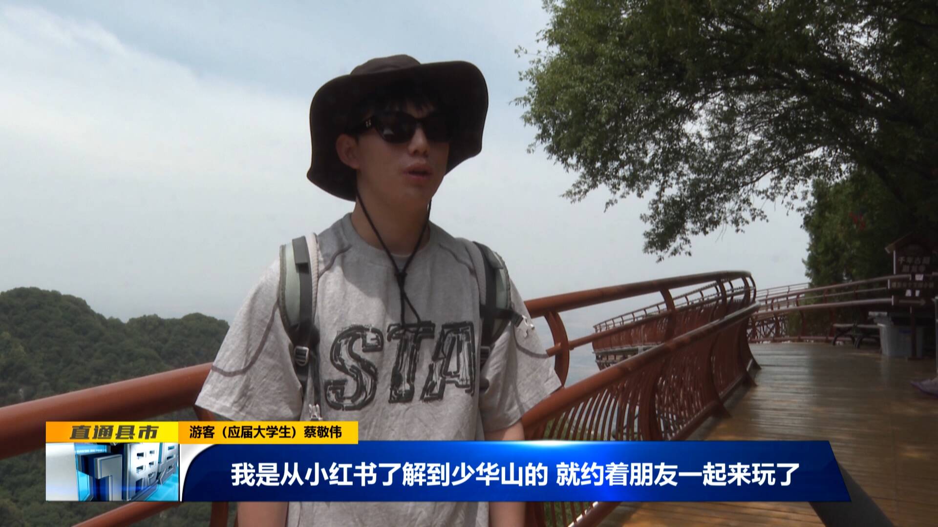 游客(應屆大學生)蔡敬偉:“我是從小紅書了解到少華山的,就約著朋友一起來玩了,來了以后發現這里空氣很好,環境很好,很涼快,也會推薦身邊其他的朋友來。”