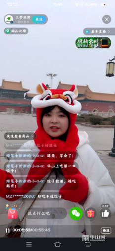 “福到門庭喜氣盈˙直播正報萬家春”,春節將至,年味漸濃,在做好疫情防控的前提下,為積極轉戰線上,營造喜慶祥和的節日文化氛圍,為廣大群眾送上新春問候,1月22日,西岳廟文物管理處、華陰市文化和旅游局、華山三特索道聯合開展了“福到門庭喜氣盈·直播正報萬家春”線上直播活動,通過直播鏡頭與大家共度新春佳節,讓就地過年的人民群眾也感受到別樣溫暖。本次線上迎新春送祝福直播活動收獲觀眾共1.3萬人次,直播現場獲得點贊次數達7.4萬次,抖音直播間里,觀眾們積極留言參與,點贊刷寶,歡喜熱鬧。