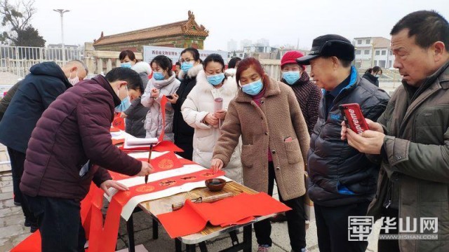(通訊員:王飛玉 安文靜)春聯是中華民族春節期間特有的文化元素,為了給附近群眾及干部職工送上節日的祝福,1月25日下午2:30,西岳廟文物管理處李明俊副主任在西岳廟廣場向當地群眾義送春聯。期間,還向當地政府奮戰在抗疫一線的工作人員送去中書協會員張躍峰手書春聯50余幅。