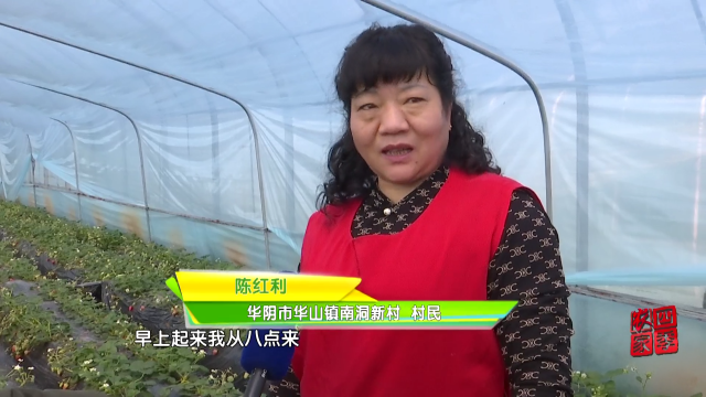 華陰市華山鎮南洞新村 村民?陳紅利:早上起來我從八點來,等于是摘草莓,大概早上起來可能是能摘四五十盆吧,完了一盆就是五斤,一斤賣十塊錢,這等于是第二茬的草莓,往后還有一穗花再一開,基本上到五月就完了。