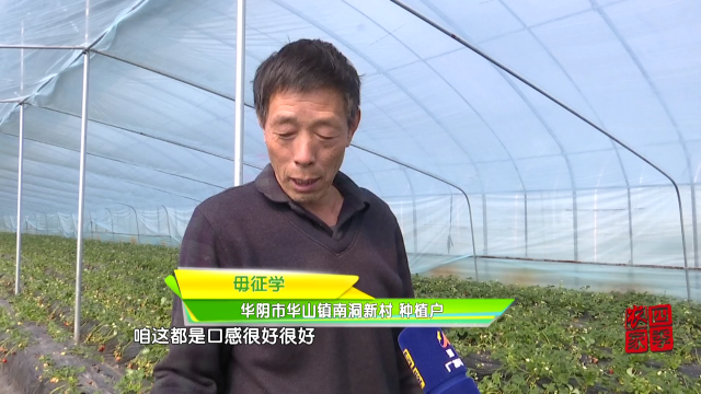 華陰市華山鎮南洞新村 種植戶?毋征學:咱這都是口感很好很好,你不信看,我給你嘗一下,甜的很甜的很,我這草莓銷量了其它啥不用愁,主要銷到西安、青海、北京、山西再本地,基本上一年到頭下來就是四五萬元(每棚)。
