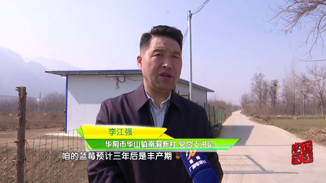 華陰市華山鎮南洞新村 黨總支書記 李江強:咱的大棚草莓經過兩年的發展,共向群眾分紅是7.5萬余元,下一步我們將繼續壯大村集體經濟,現在我們已經平整了40畝的藍莓,預計到三月中旬下苗子,咱的藍莓預計三年后是豐產期,預計每畝地的經濟價值是三萬余元,通過藍莓和草莓,我們將進一步壯大村集體經濟,然后解決村民務工問題。