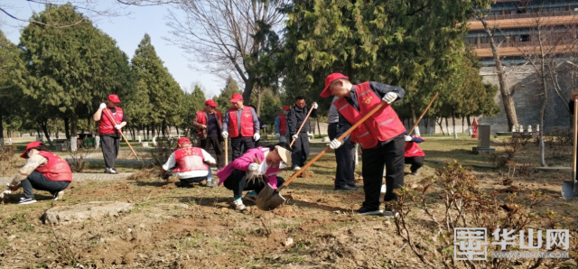 當天上午,西岳廟文物管理處也組織志愿服務隊80余人在御花園開展“綠滿岳廟怡人心,花開遍地笑常在”植樹活動,種植了1000余株月季,為千年古廟增添了新綠。
