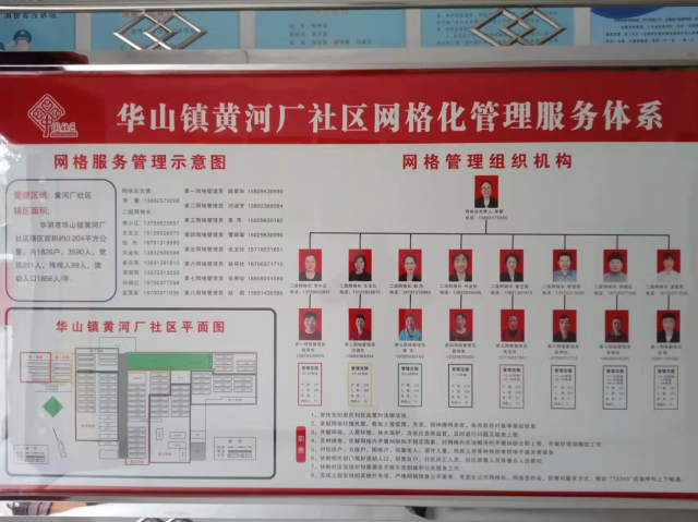 實現服務治理全覆蓋。為了更好的服務居民,華山鎮黃河廠社區計劃為轄區60棟樓制作了網格公示牌,公示牌上印有網格工作人員的姓名、聯系方式,公開張貼在每棟樓前的顯著位置,群眾可通過公示牌上的聯系方式及時向轄區網格員反映問題。網格員24小時“在線”,居民的電話鈴即是他們的沖鋒號,解決群眾身邊的困難事即是他們的工作目標,實現“你呼叫、我服務”。