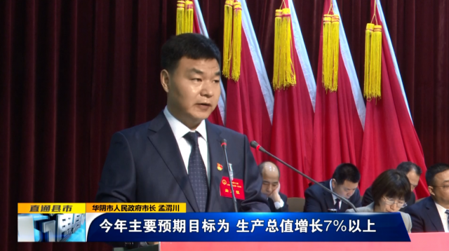 華陰市人民政府市長 孟渭川: “今年主要預期目標為,生產總值增長7%以上;地方財政收入增長7%以上;全社會固定資產投資增長8%以上;全市旅游人數增長40%以上,旅游收入增長50%以上;社會消費品零售總額增長7%以上;城鎮居民人均可支配收入增長7%以上,農村居民人均可支配收入增長8%以上?!?br/>
