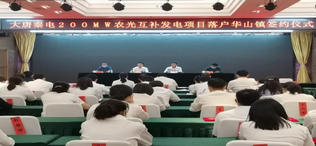 華陰市華山鎮隆重舉行大唐秦電200MW農光互補發電項目落戶華山鎮簽約儀式