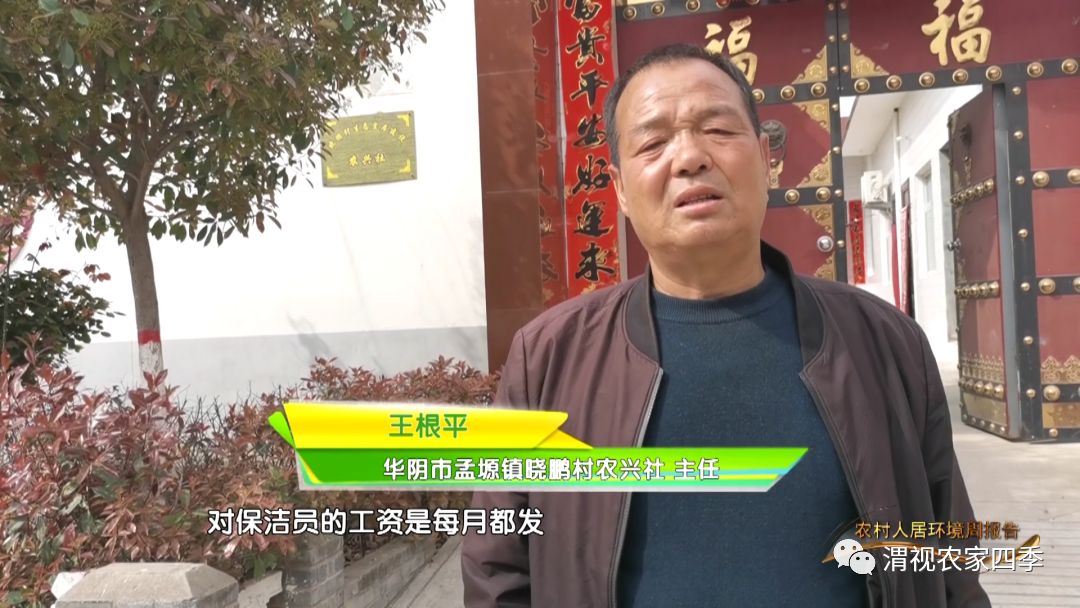 華陰市孟塬鎮曉鵬村農興社 主任 王根平:村上對咱的環境衛生是大力支持,對保潔員的工資是每月都發,農興社每年給兩萬塊錢,每戶收的一百多元就不夠,村上給補貼一點。