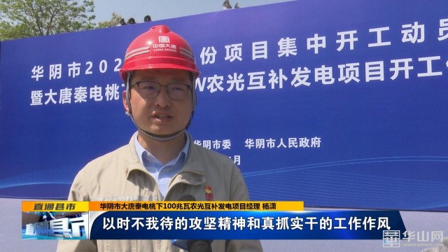 華陰市大唐秦電桃下100兆瓦農(nóng)光互補發(fā)電項目經(jīng)理 楊瀟:“秦嶺公司將錨定年內(nèi)建設投產(chǎn)目標,倒排工期,自我加壓,以時不我待的攻堅精神和真抓實干的工作作風,把我們桃下項目建設成為精品工程,為我們?nèi)A陰市綠色生態(tài)高質(zhì)量發(fā)展貢獻大唐力量。”