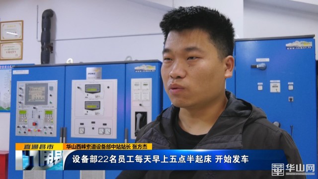 華山西峰索道設(shè)備部中站站長 張方杰:“設(shè)備部22名員工每天早上五點半起床,開始發(fā)車,發(fā)完車之后就索道開始運(yùn)營,一直到晚上的八點鐘開始檢修,基本上每天下班都在凌晨12點左右。”