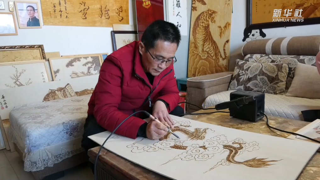烙畫,又稱烙花、燙花、火筆畫,是一種歷史悠久的工藝美術技藝。龍年將至,陜西省華陰市烙畫藝人席軍峰創作了以龍為主題的烙畫作品,迎接新年的到來。