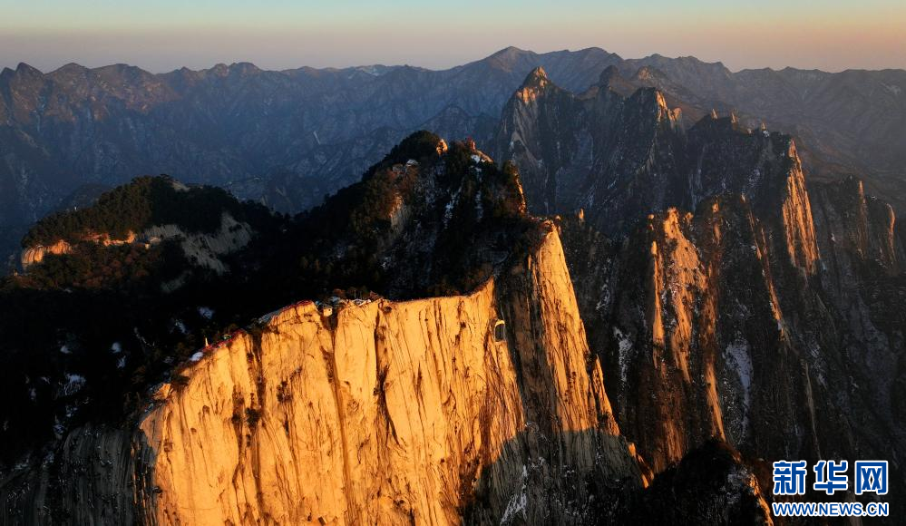日落時分的華山群峰(2月12日攝,無人機照片)。
