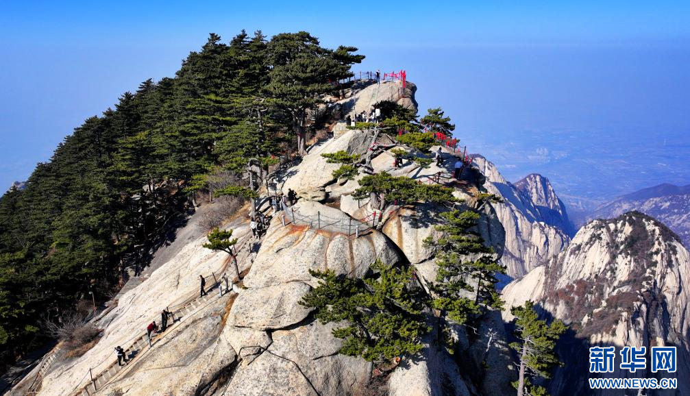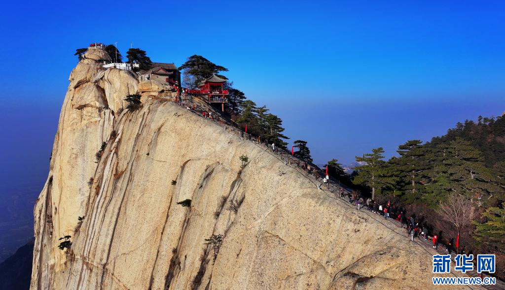 游客在華山東峰游覽(2月12日攝,無人機照片)。
