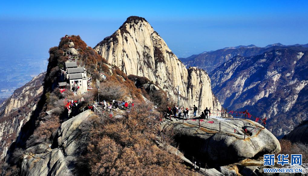游客在華山北峰游覽(2月12日攝,無人機照片)。