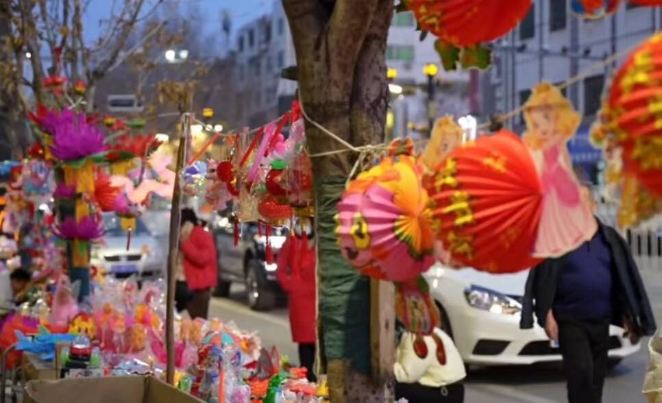 在華山腳下的玉泉路兩側掛滿了祈福的大紅燈籠,人們觀賞、選購各式花燈,感受花燈文化藝術魅力。
