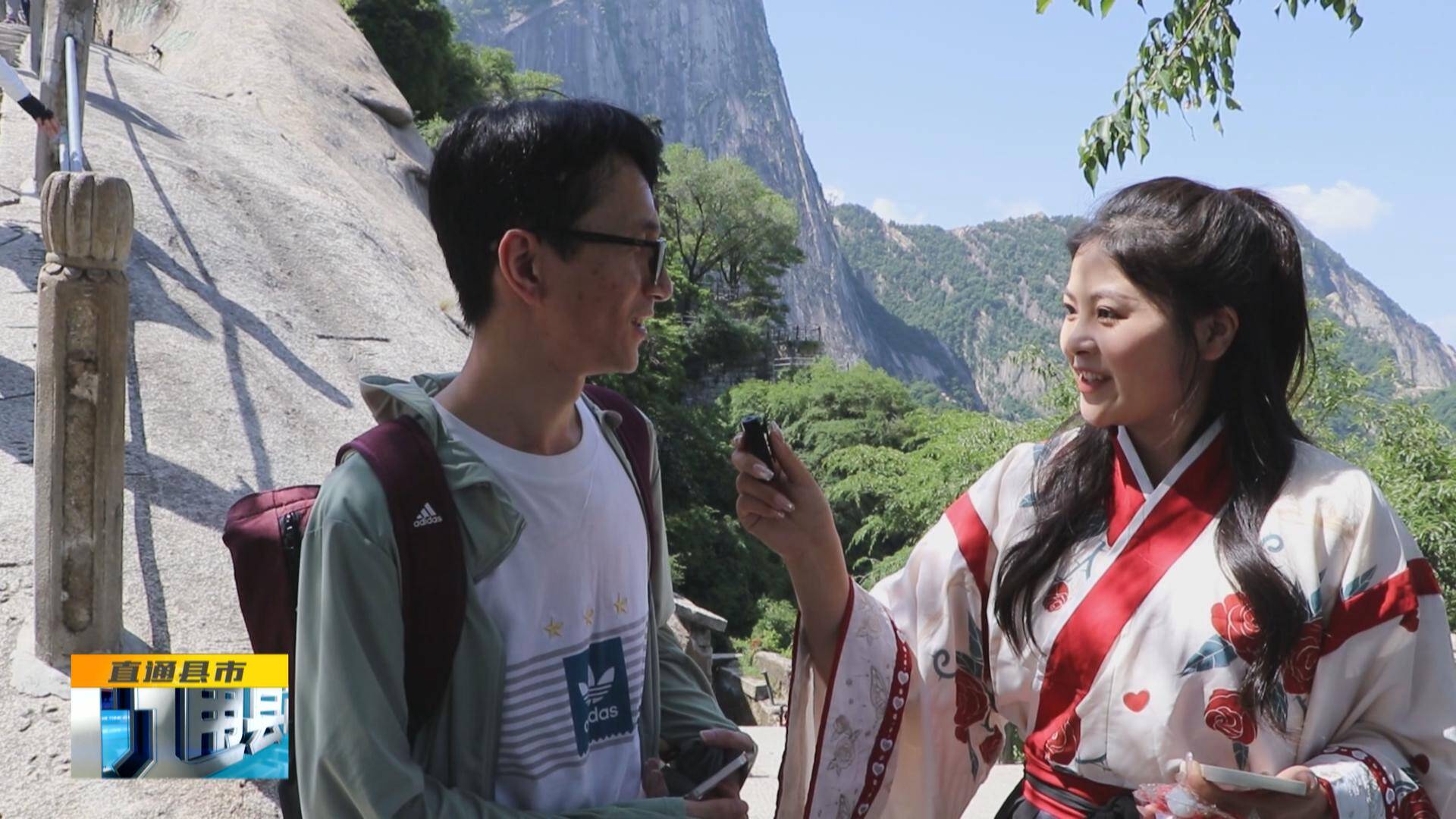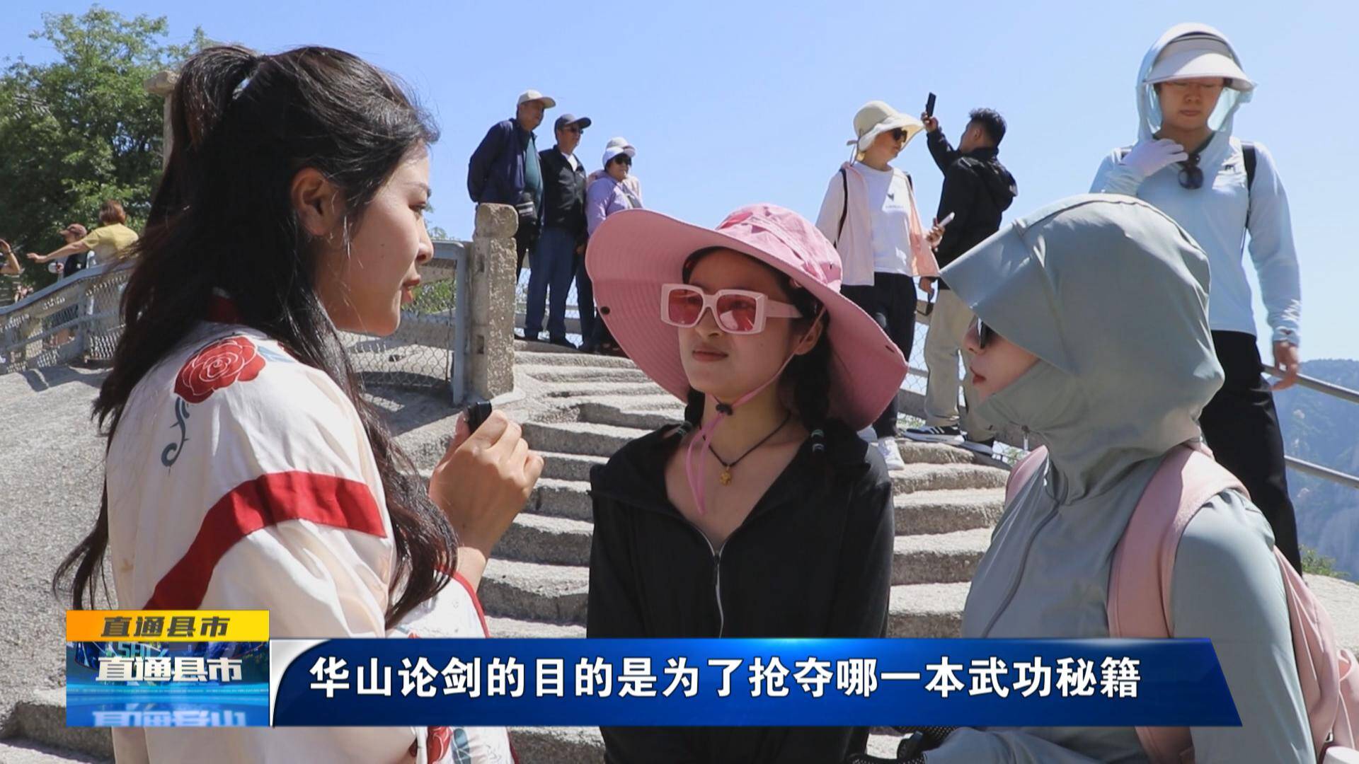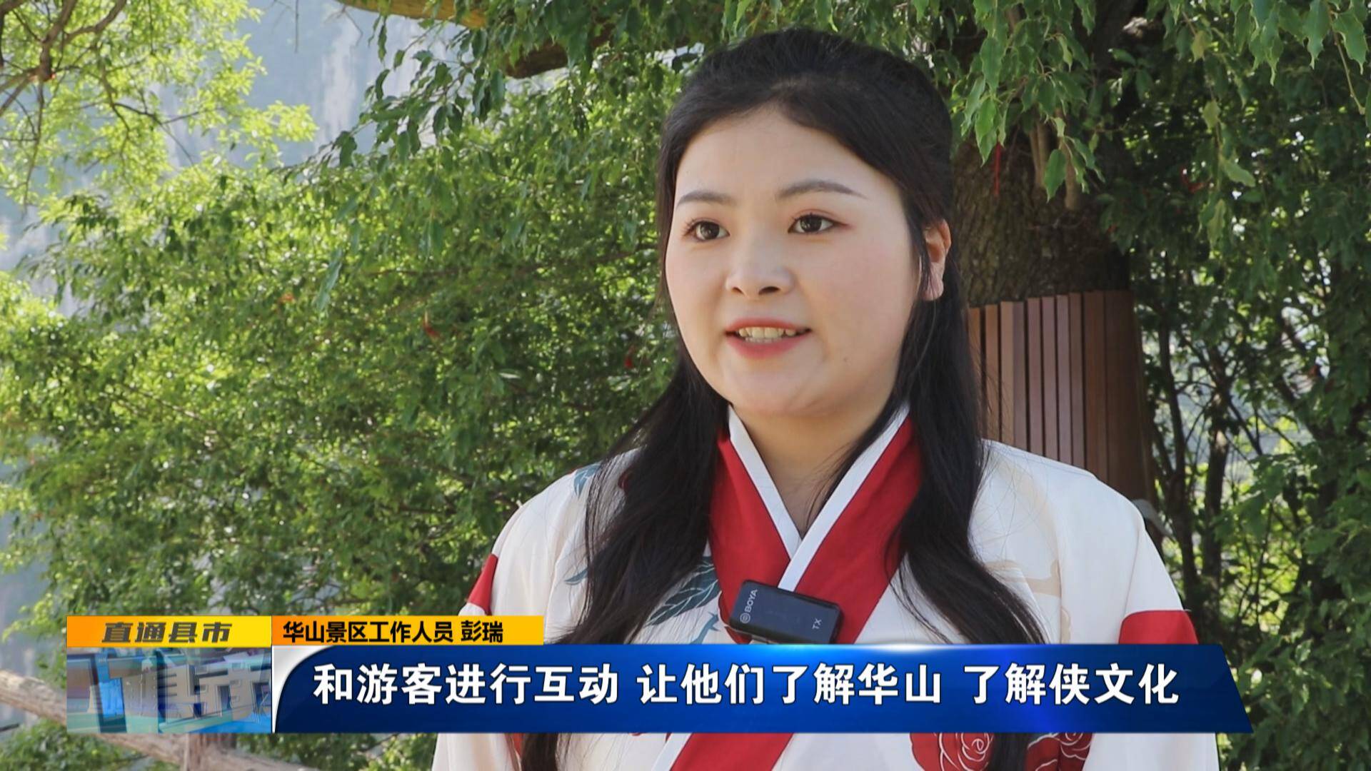華山景區工作人員 彭瑞:“我平時的工作呢就是服務游客,通過線上和線下的方式,線上呢,就是通過直播以及短視頻的方式,讓大家了解如何游覽華山,如何打卡華山的景點。線下呢,就是通過有獎問答的方式和游客進行互動,讓他們了解華山,了解俠文化。”