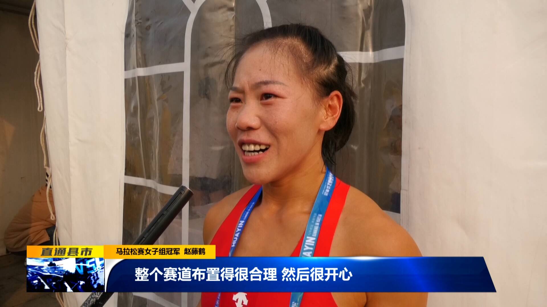 馬拉松賽女子組冠軍 趙藤鶴:“很開心來到華陰(參加)馬拉松,整個賽道都特別好,然后拉拉隊特別熱情,華陰整個賽道很干凈,而且溫度特別適宜,整個賽道布置得很合理,然后很開心,這次能跑了個好成績,下次繼續再來。”