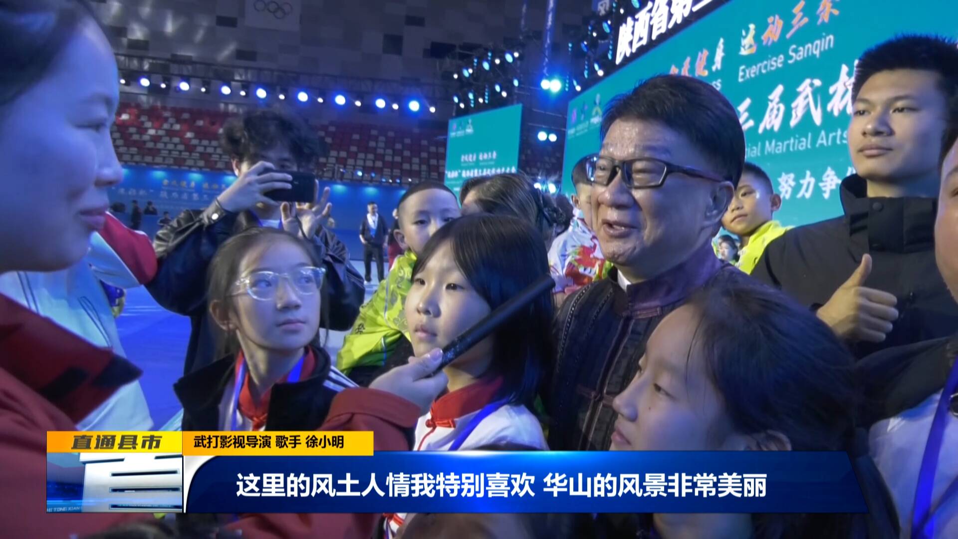 武打影視導演 歌手 徐小明:“非常高興!能在這么盛大的活動中,和大家一起推動武術發展,我特別興奮。這里的風土人情我特別喜歡,華山的風景非常美麗。我昨天去了,很美麗,就是有點可惜,下雨了。我肯定要再來一次。”