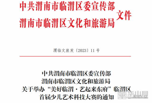 為了貫徹落實習(xí)近平總書記新時代特色社會主義文藝思想、推動新時代中國特色社會主義文藝實踐,引導(dǎo)全區(qū)廣大少年兒童愛黨、頌黨、贊黨。中共渭南市臨渭區(qū)宣傳部、臨渭區(qū)文化和旅游局將舉辦“美好臨渭·藝起來東府”臨渭區(qū)首屆少兒藝術(shù)科技大賽,特制訂活動方案如下: