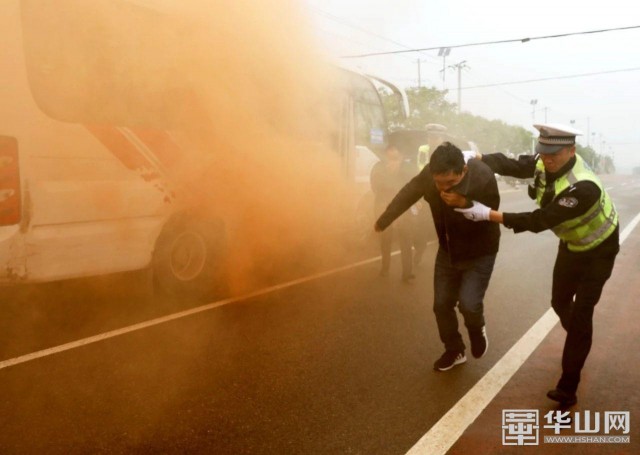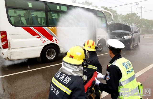 渭南市公安局交警支隊臨渭大隊等多部門聯合開展交通事故火情逃生救援演練活動