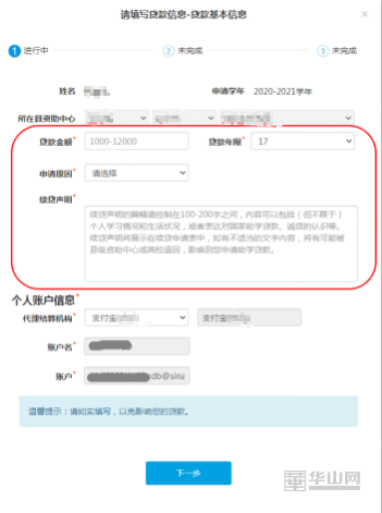 學生核實申請信息后,填寫助學貸款借款金額、期限以及續貸申明,提交申請信息。(注意:貸款期限一般選最長的,較長的貸款期限能幫你充分享受優惠政策,從容還貸)