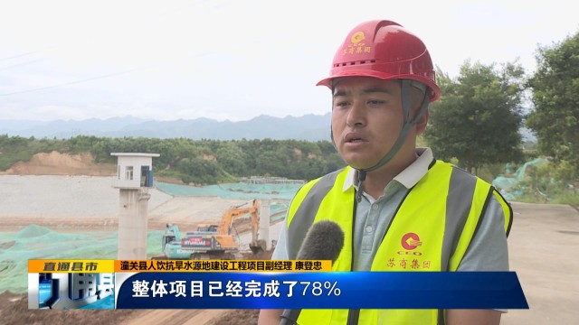潼關(guān)縣人飲抗旱水源地建設(shè)工程項目副經(jīng)理 康登忠:“這個水庫主要就是預(yù)制塊鋪裝這一塊,整體項目已經(jīng)完成了78%,目前,我們蘇商集團組合人員加班加點,加大投入機械力度,爭取在8月份能夠投產(chǎn)使用。”