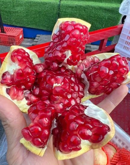 潼關軟籽石榴個頭大、果皮薄、甜度高,果肉如紅寶石般晶瑩剔透,籽軟可食,鮮甜爆汁,深受消費者喜愛,產品供不應求。