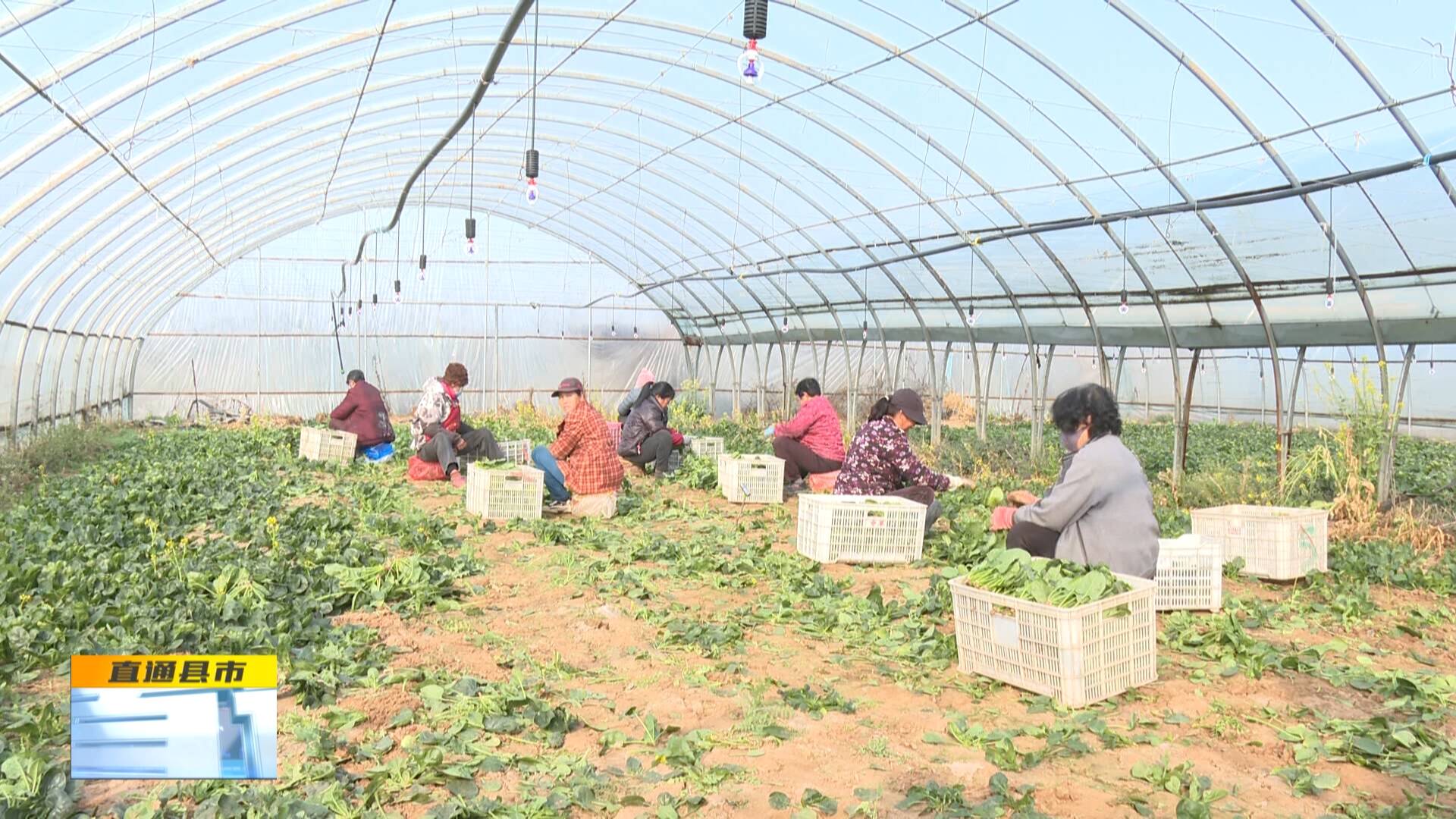 走進棚內,成片綠油油的菠菜莖綠葉肥,郁郁蔥蔥,村民們在大棚內來回穿梭忙碌著,大家分工明確,挖菜、碼菜、裝菜,處處呈現著一派繁忙景象。