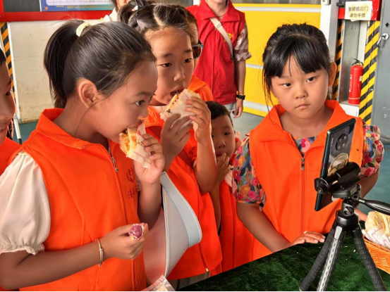 實踐環節,孩子們走進生產車間,實地觀看肉夾饃的完整生產流程。從食材的精心挑選到制作過程的精細工藝,每個環節都彰顯著潼關肉夾饃制作的嚴謹與傳承。在工作人員指導下,他們親自體驗肉夾饃餅坯制作,感受傳統美食制作的樂趣與不易,現場氣氛熱烈。同時,大家還觀看了肉夾饃線上直播銷售過程,真切體會到傳統美食與現代電商的融合發展,現場品嘗了剛出爐的肉夾饃,大家贊不絕口。