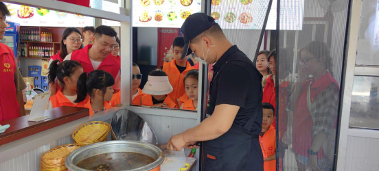 來到潼關肉夾饃特色文化街區,孩子們走進店鋪觀看傳統手工制作肉夾饃的打磨過程,親身感受傳統工藝的傳承與堅守。街道兩旁,各類肉夾饃店鋪各具特色,大家一邊聆聽店主講述創業故事,一邊在濃濃的煙火氣中感受家鄉產業的蓬勃生機。
