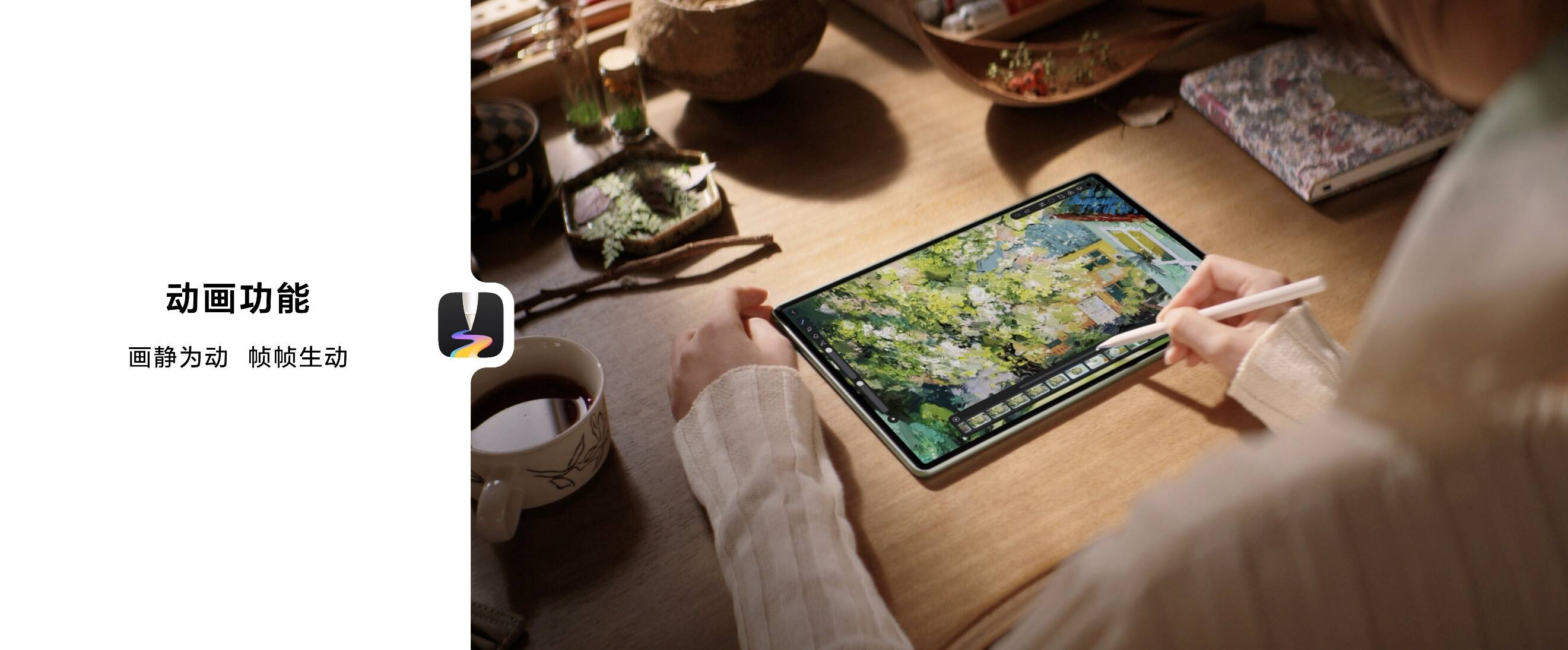 圍繞創作場景,HUAWEI MatePad Pro 12.2英寸重點升級了天生會畫App,全新的立體油畫筆刷可以模擬真實水粉、丙烯在紙紋上的顏料堆積感,筆觸所及,與真實油畫質感幾近一致。新增動畫功能,通過簡單操作即可讓畫作活靈活現地動起來,還能調節幀與幀之間的變化速度,原本靜態的數字畫作,多了層看得見的生命力。