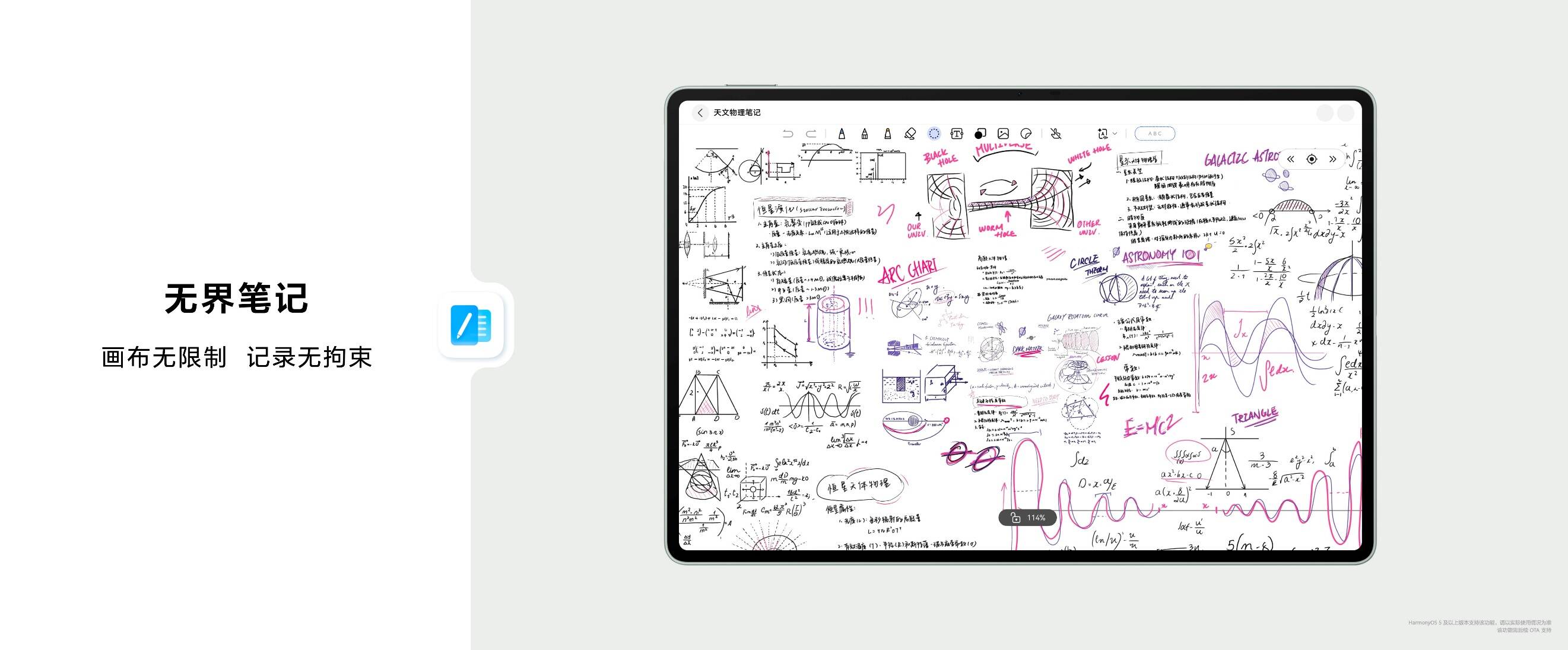 全新升級的華為筆記同樣帶來更多智慧、高效和有趣的功能,提前完成設定后,書寫時能自動激發實時AI字跡調整,讓筆記更美觀。無界筆記功能讓用戶無需預設畫布尺寸,筆記內容延伸到哪里,畫布自動拓展到哪里,靈感記錄不受約束。此外,華為筆記還支持跨端協作,可以調用其他設備拍攝或掃描的文檔內容,直接進行編輯調整,讓記錄過程簡單高效。