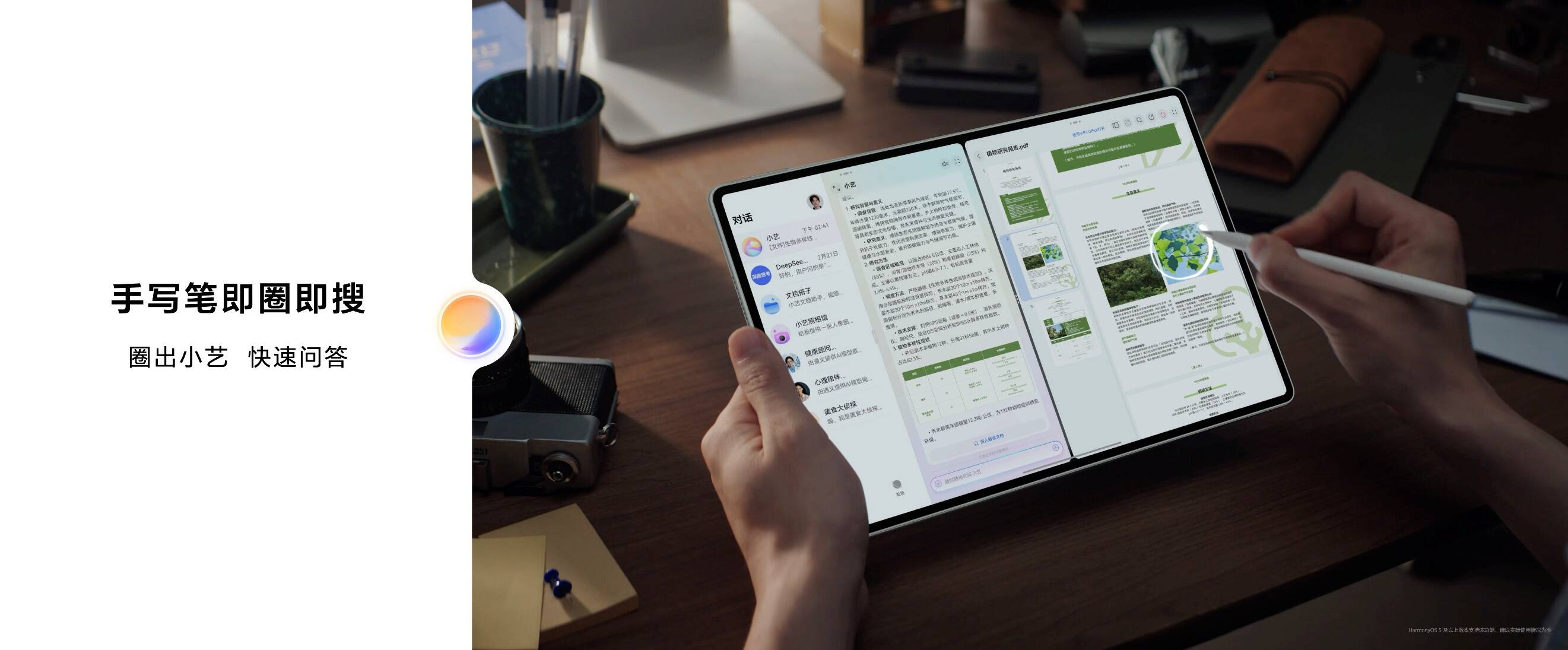 除了專業應用加持,HarmonyOS 5還帶來了更智能的生產力體驗。小藝支持智能分屏功能,可以自動識別本地文檔,一鍵生成摘要,識屏對話功能可以就屏幕中的內容直接向小藝提問以獲得結果,配合手寫筆還可直接圈出小藝,即時問答。